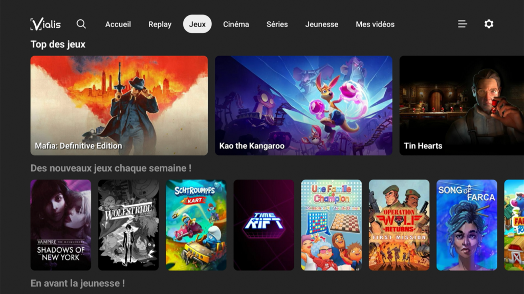 L’adoption d’Android TV marque une ouverture quasi complète au Play Store. Les abonnés Vialis accèdent désormais à Netflix, Disney+, Prime Video (les plateformes de SVOD ne sont pas incluses) ou encore YouTube directement depuis leur téléviseur, sans avoir à jongler avec l’interface de la télévision ou encore même via une solution de cast.